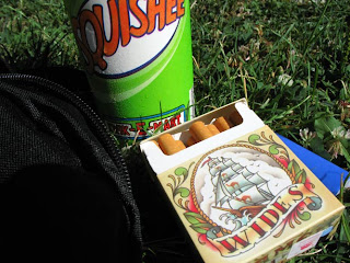 Every now and then, something will come to mind that I either don't want to think about, or wish I wasn't thinking about, and that's when I'll roll over and light a cigarette and while smoking it, i'll think about smoking a cigarette, and usually when i'm doing that, i'll think about other times I smoked a cigarette, and what I thought about then, and you know, something usually comes from it, but if nothing comes, i'll snuff it out and lay back down to let the sun give me some ideas. It's nice to think that way. Just not really worrying about what you think about, except the parts where I still have to think about my Kevin Bacon experience. That part gets really boring, especially where it's been years and still it eats up my time. It would make more sense if say, I had been driving drunk, and I killed some little kid who ran out in the road to catch a ball or something. Then I would get it. I'd be like, 'well yea dTown. why don't you think about that for a while? But this is nothing like that. This is more like spending time thinking about why George Bush gets to be The President. There's no point to it. There's No Reason for it. It just IS, so there you go.